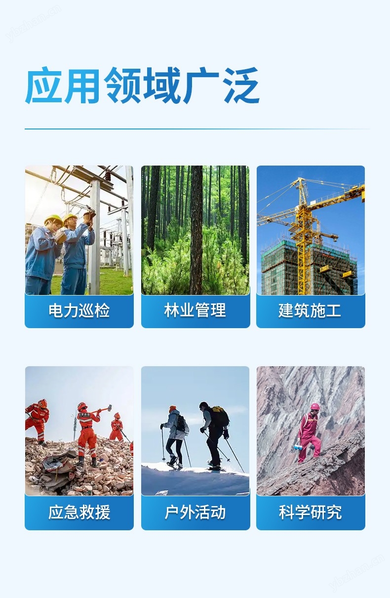 消防應(yīng)急,水域救援,電力,建筑領(lǐng)域?,測繪,林業(yè)與農(nóng)業(yè)?,礦業(yè)與地質(zhì)勘探?,交通與基礎(chǔ)設(shè)施,環(huán)保與自然資源管理,地理測量與繪圖?,航空航天與軍事?。